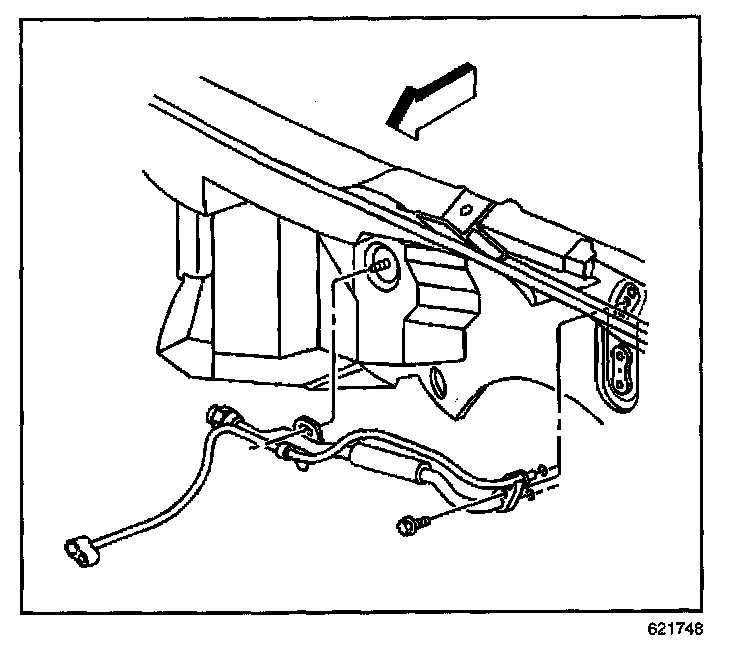 13. Remove the heater pipe to heater core retaining bolt.