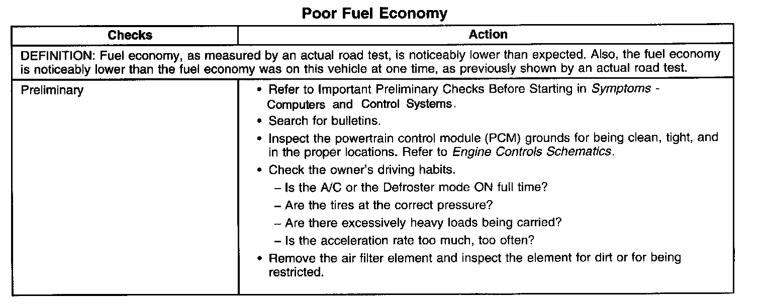 Poor Fuel Economy