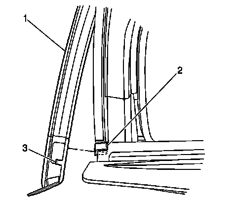 5. Align the small notch (3) near the end of the weatherstrip over the edge of the lift window panel.