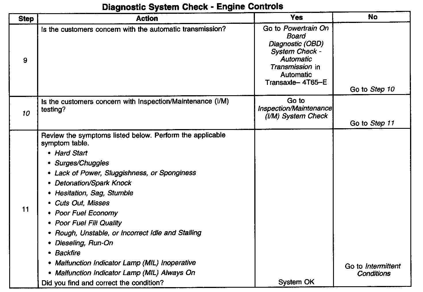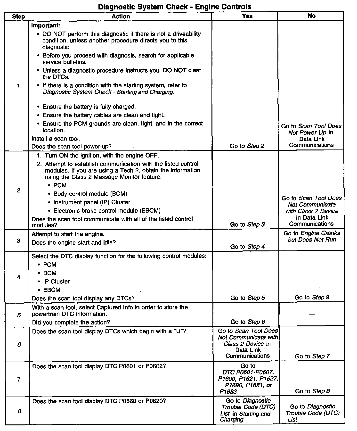 DESCRIPTIONThe Diagnostic System Check-Computers and Controls Systems is an organized approach to identifying a condition that is created by a malfunction in the powertrain control system. The Diagnostic System Check must be the starting point for any driveability concern. The Diagnostic System Check directs the service technician to the next logical step in order to diagnose the concern. Understanding and correctly using the diagnostic table reduces diagnostic time, and prevents the replacement of good parts.