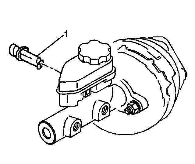 2. Remove the brake fluid level sensor. Using needle nose pliers, carefully depress the retaining tabs on the end of the brake fluid level sensor (1) and press the sensor through the reservoir to remove.