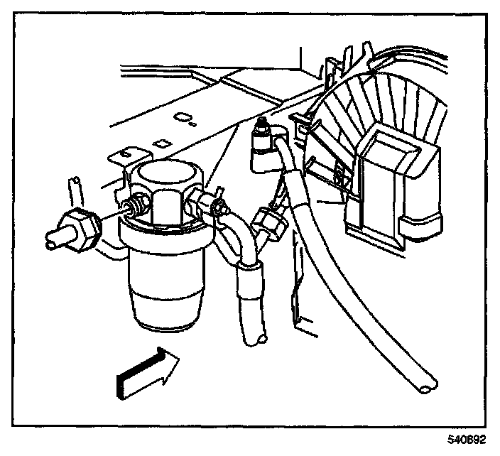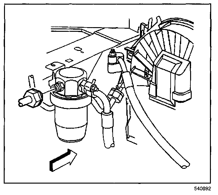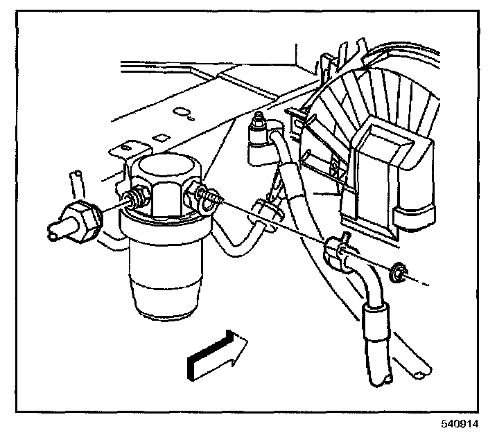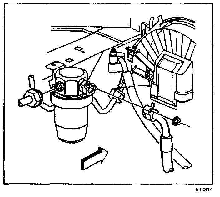 3. Remove the suction hose nut at the accumulator and position the suction hose aside.