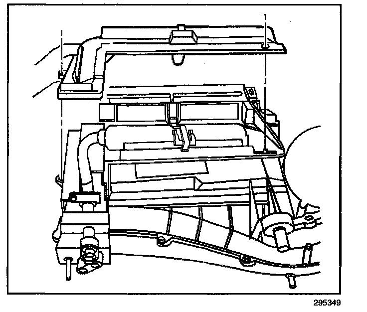 14. Remove and discard the seals (1,2) from the heater core cover.