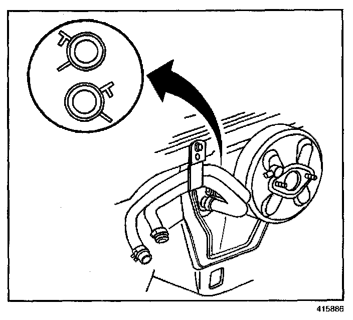 IMPORTANT: Reposition the heater core hose clamps in the indicated location.