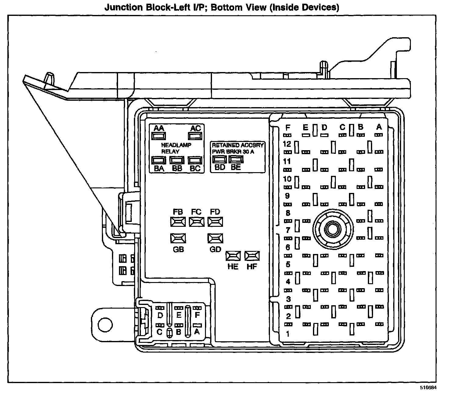 Junction Block-Left I/P; Bottom View (Inside Devices):