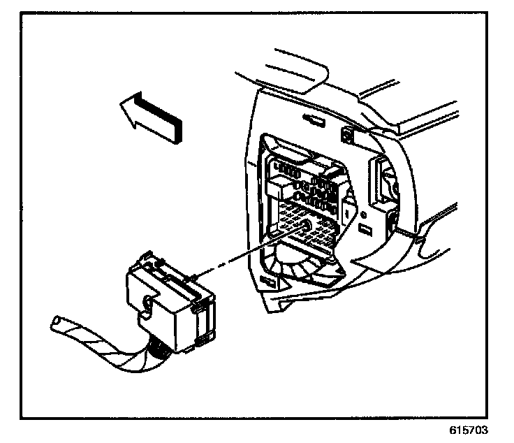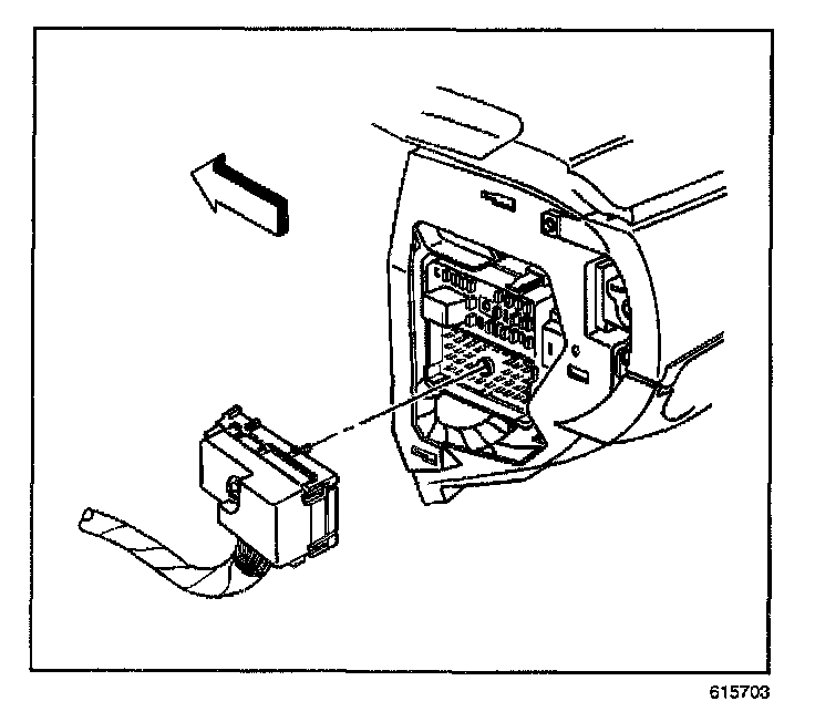 5. Remove the junction block tab from the slot in the cross vehicle beam. Pull the junction block away from the IP.