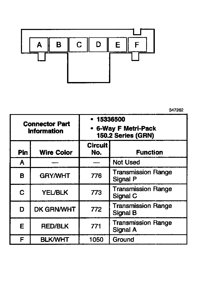 Transmission Internal Mode Switch Connector, Wiring Harness Side