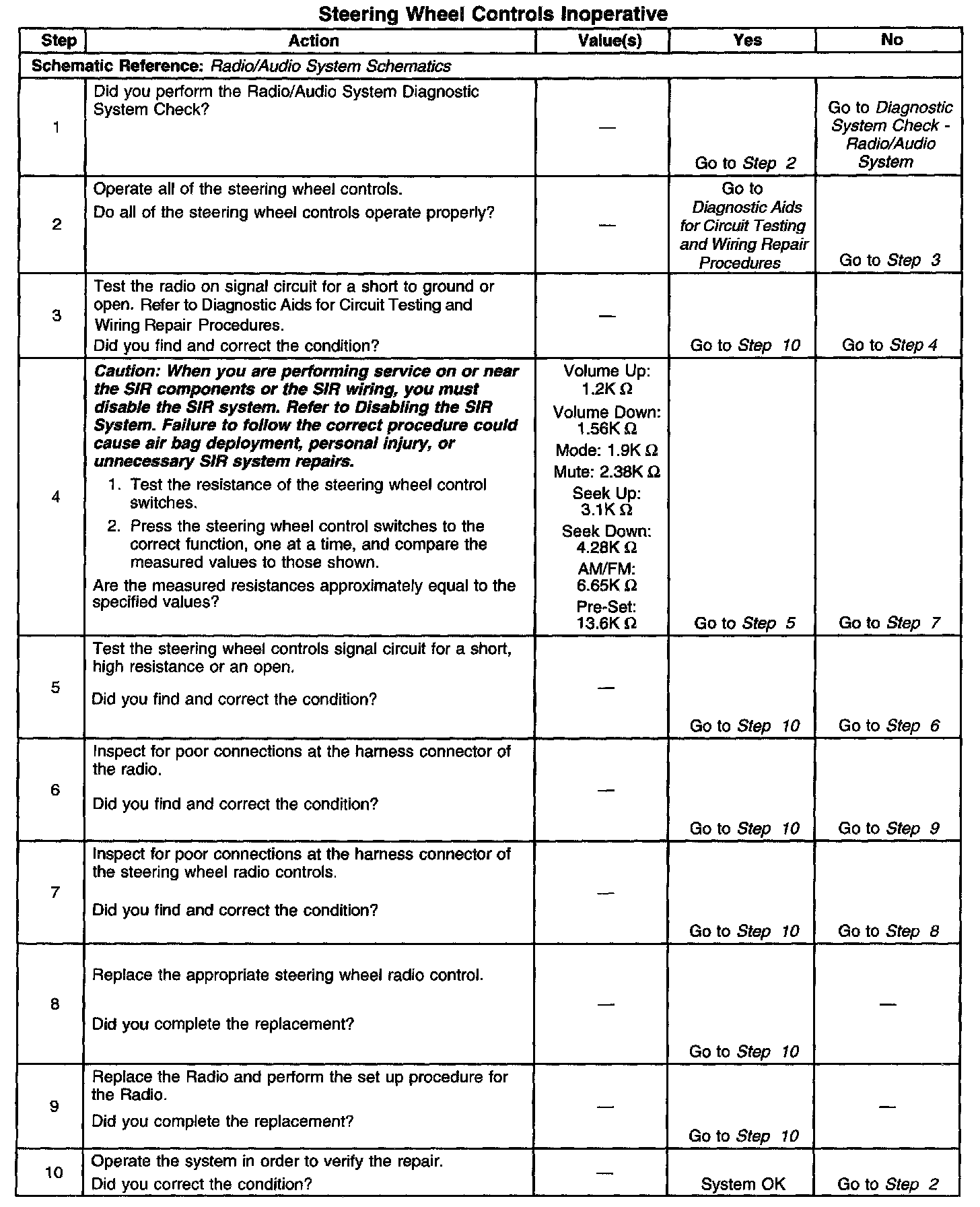 Steering Mounted Controls Transmitter: Testing and Inspection