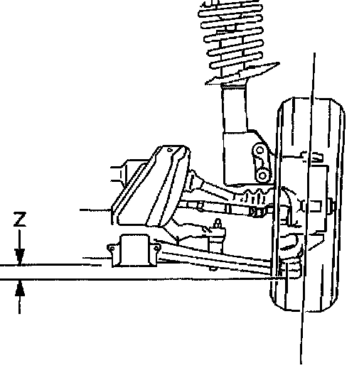 The Z height dimension measurement determines the proper ride height for the front end of the vehicle. There is no adjustment procedure. Repair may require replacement of suspension components.