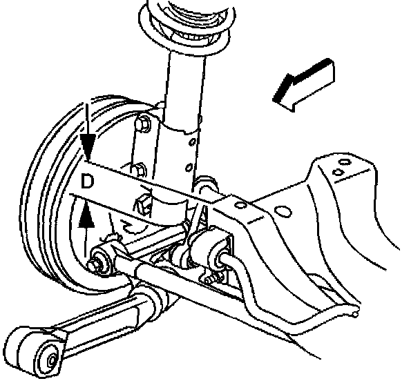 The D height dimension measurement determines the proper rear end ride height. There is no adjustment procedure. Repair may require replacement of suspension components.