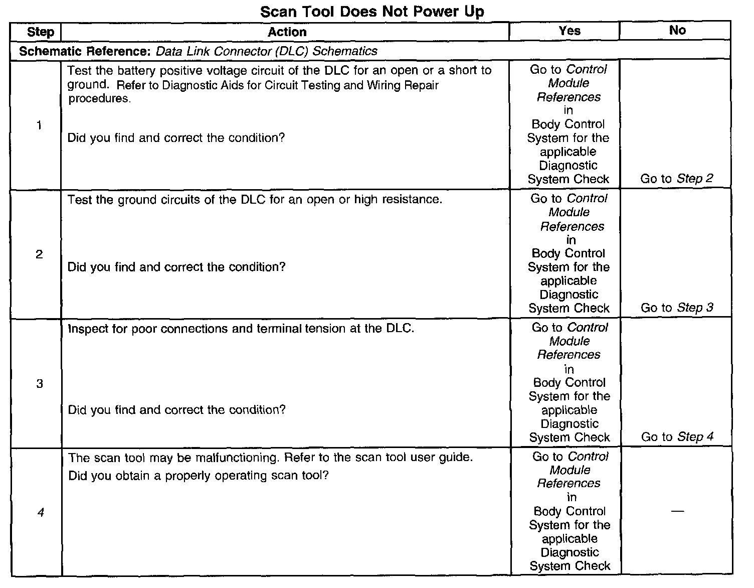 4. If the battery positive voltage and ground circuits of the DLC are functioning properly. The malfunction must be due to the scan tool.