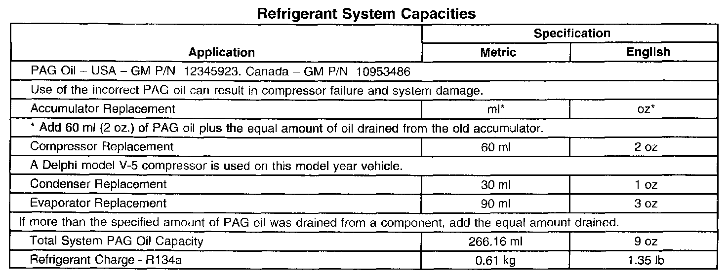Refrigerant System Capacities: