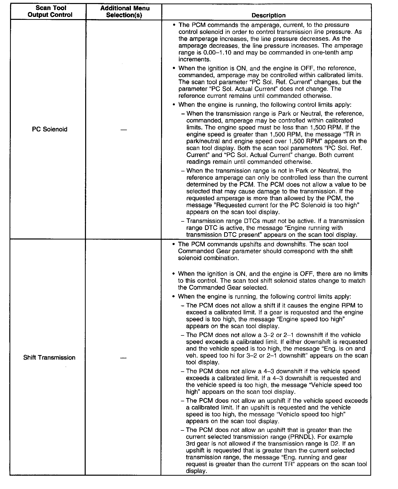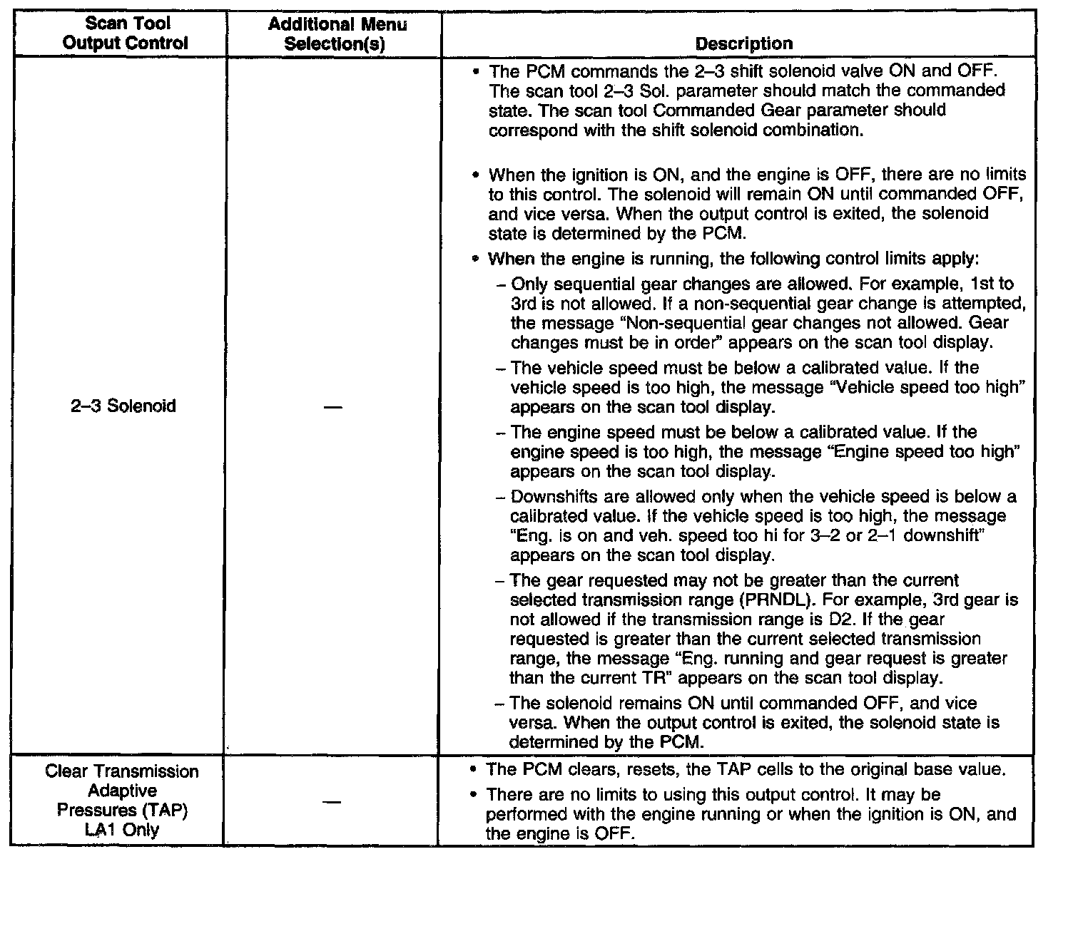 Scan Tool Output Controls