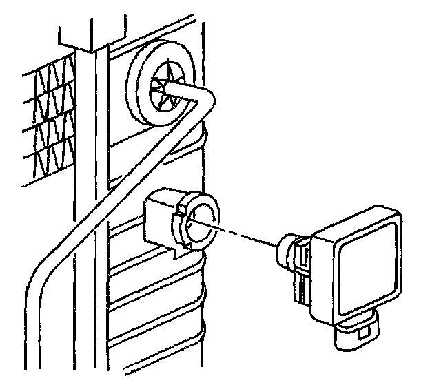 Important: In order to unlock the low coolant module, lift one leg of the snap clip from its locked position and pull outward with a slight twisting motion.