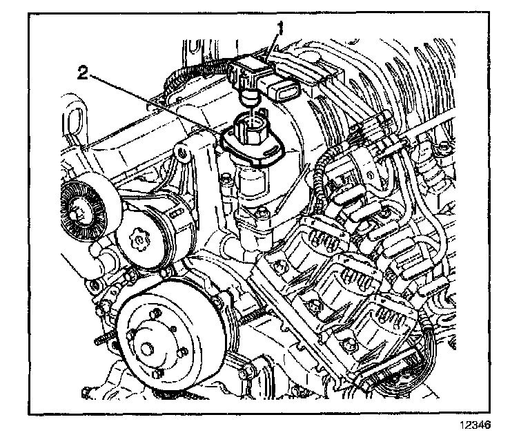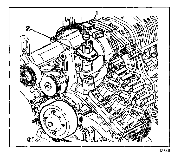 3. Carefully release the locking tabs holding the MAP (1) sensor to the PCV valve cover (2) just enough to remove the MAP sensor.