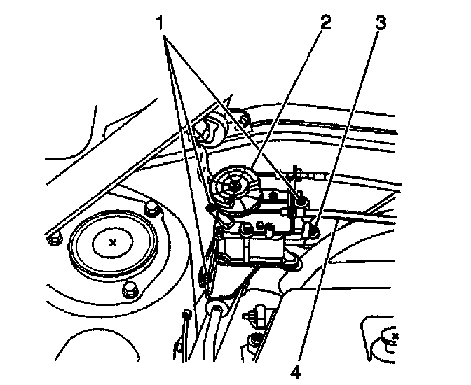 4. Install the cruise control servo cable (4) to the servo lever (1) and bracket. Secure the cruise control cable servo cable bracket with the one screw.