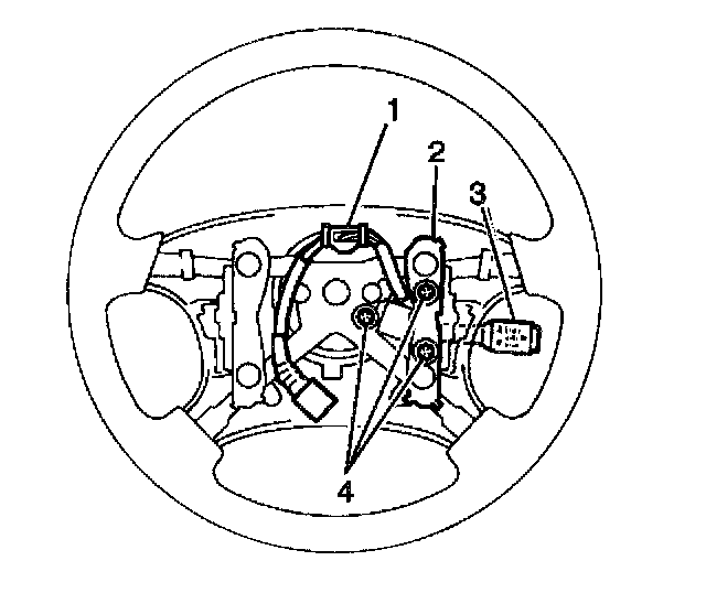 1. Install the cruise control switch (3) to the vehicle. Secure the switch with the 3 screws (4).