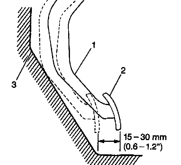 4. Depress the clutch pedal (2) to the floor (3). Return the clutch pedal within 15 - 30 mm (0.6 - 1.2 inch) from the floor.