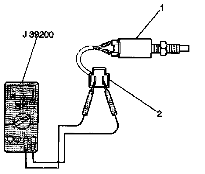 5. Adjust the probes of J 39200 in contact with both leads of the CPP switch electrical connector (2).