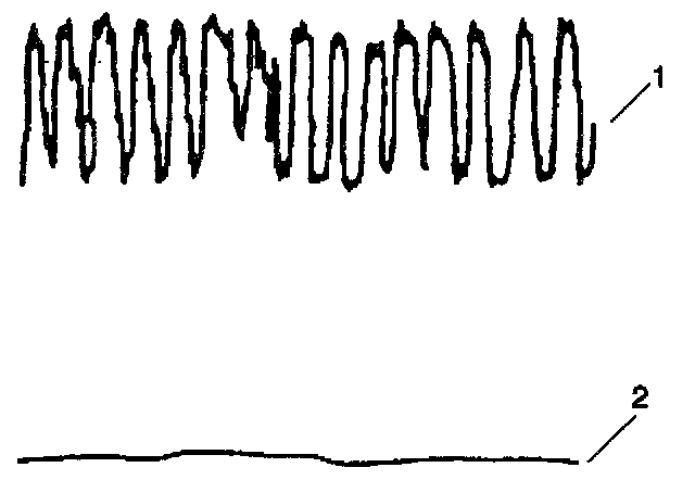 A good TWC catalyst will show a very active output voltage on the pre-catalyst heated oxygen sensor (1). A good catalyst, 95 percent hydrocarbon conversion, will show a relatively flat output voltage on the post-catalyst heated oxygen sensor (2).