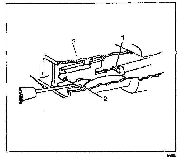 4. Grasp the wire at the back of the connector body and gently pull the terminal (1) from the connector body (3).