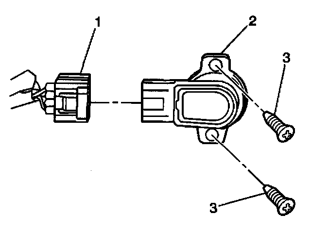 2. Remove the 2 fasteners (3) from the throttle position (TP) sensor (2).