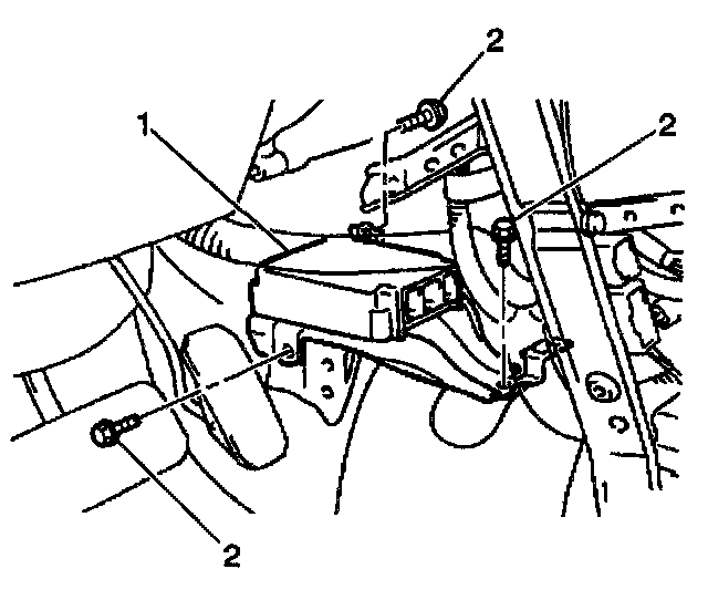 1. Install the SDM assembly (1) into the vehicle, taking care to ensure that the connectors are pointing toward the rear of the vehicle.