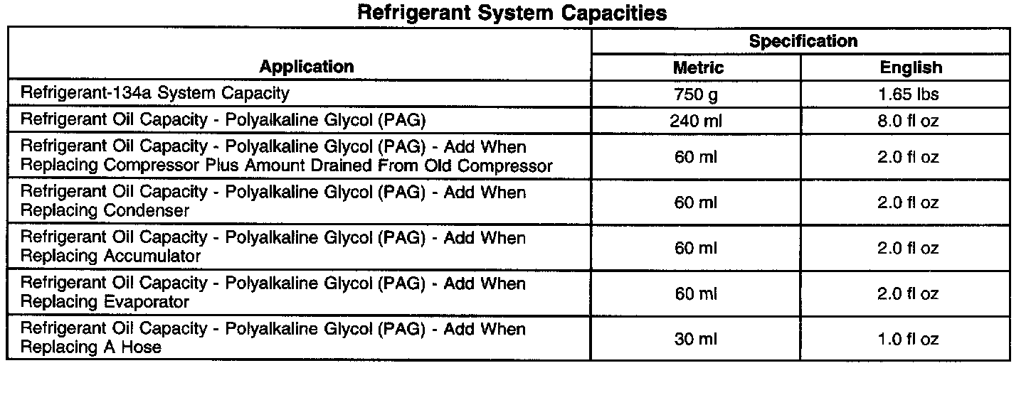 Refrigerant System Capacities: