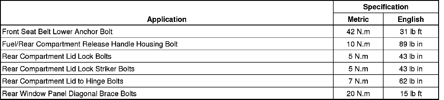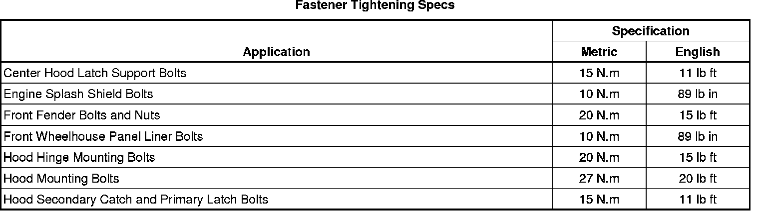 Fastener Tightening Specifications