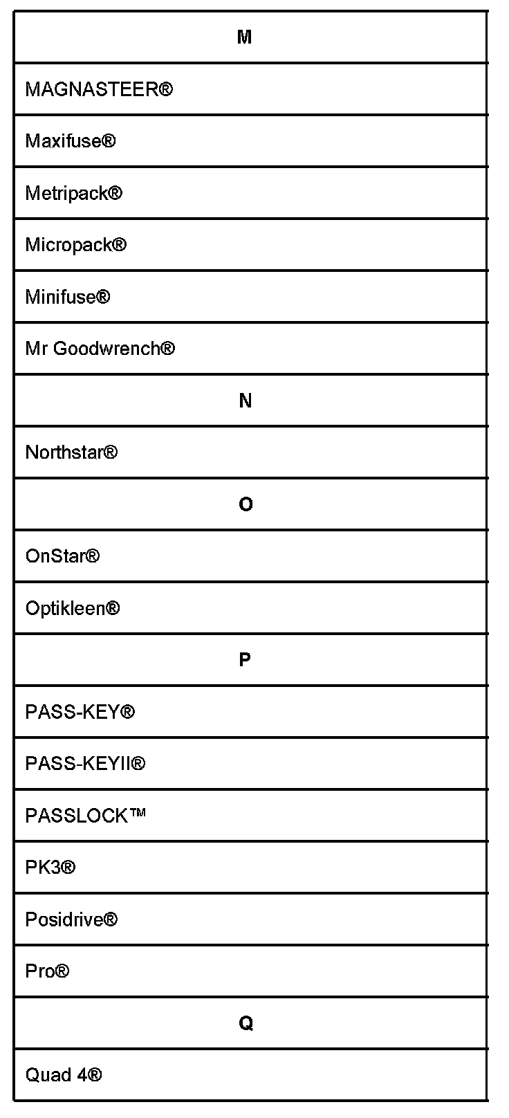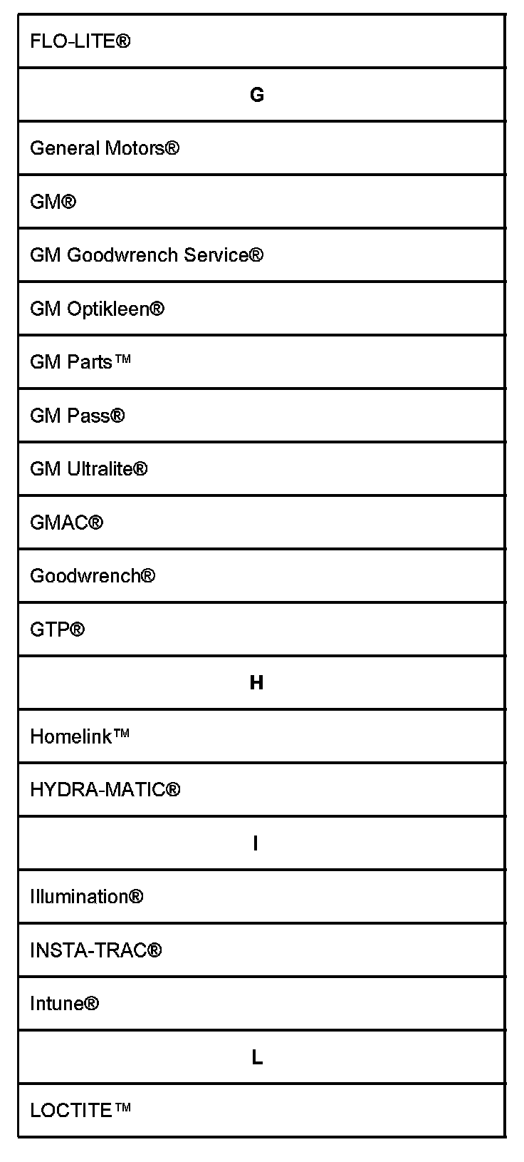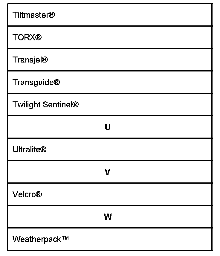 Listed are Registered Trademarks ((R)) or Non-Registered Trademarks (TM) which may appear.