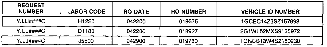 Shown are R.O. Only requests which should be returned to the requestor via the post office using the mailing label provided. No R.O. Only requests should be returned to the Warranty Parts Center.
