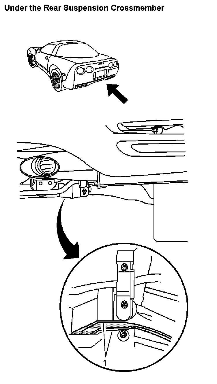 - Make sure the jack lift pad spans at least 2 suspension crossmember ribs (1).
