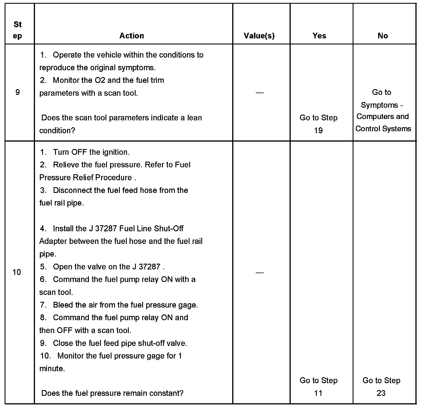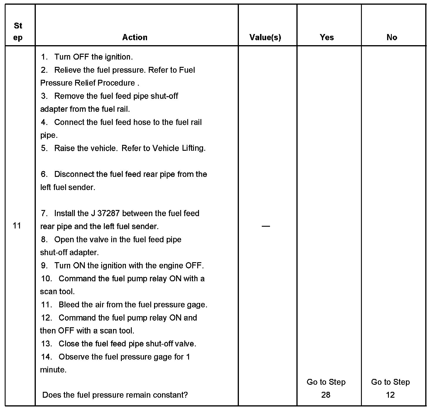 11. This step tests for a loss of fuel pressure between the fuel feed pipe shut-off adapter and the fuel pump.