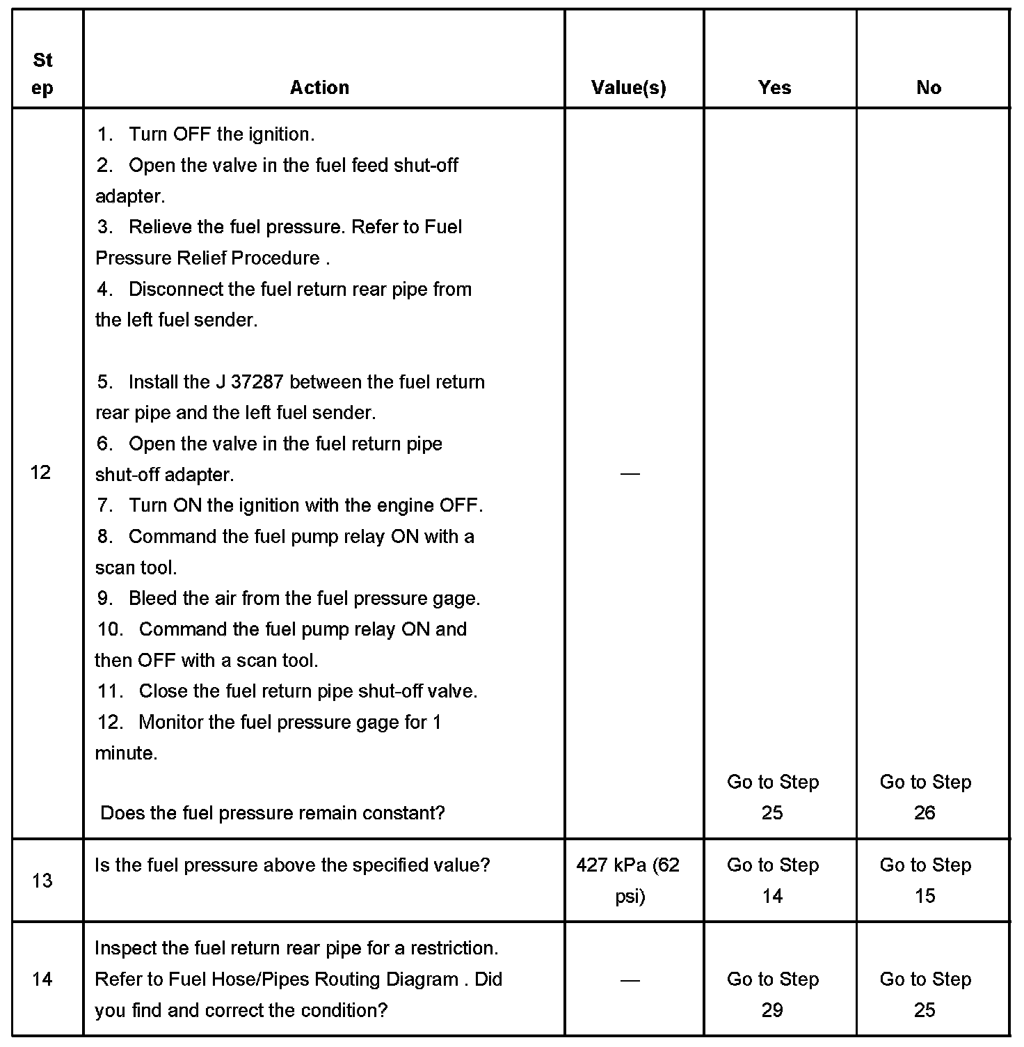 12. This step tests if the loss of fuel pressure is caused by the fuel pressure regulator, or by the check valve that is located in the fuel feed rear pipe.