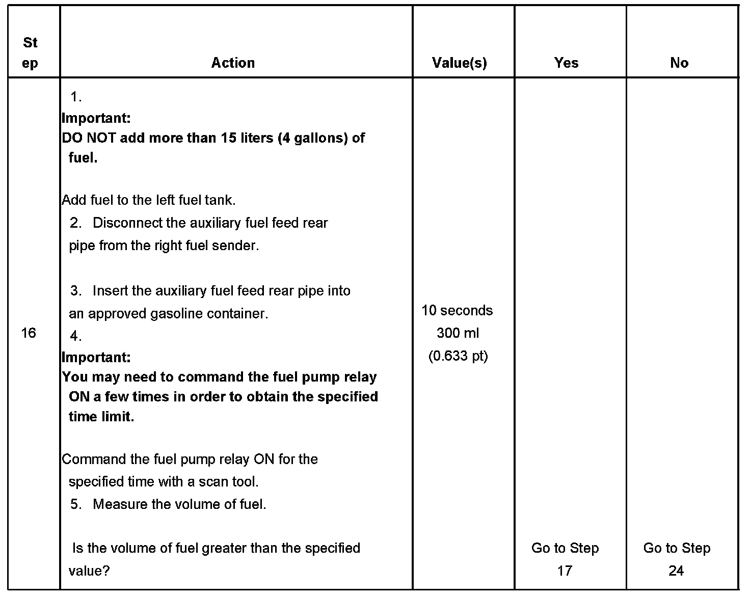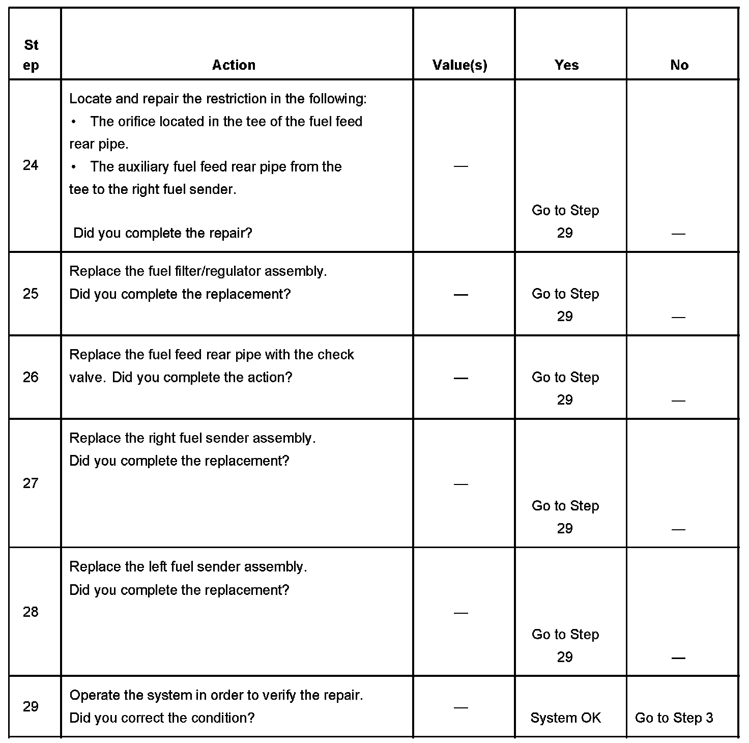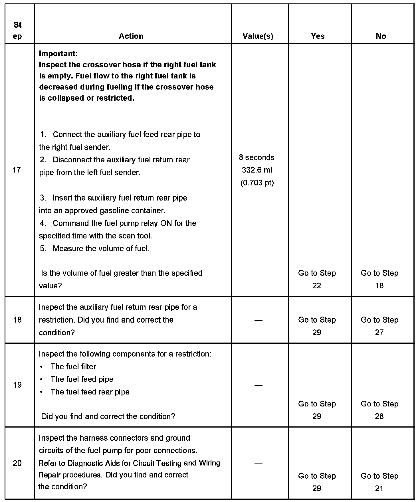 17. This step verifies the auxiliary fuel return rear pipe is not restricted.