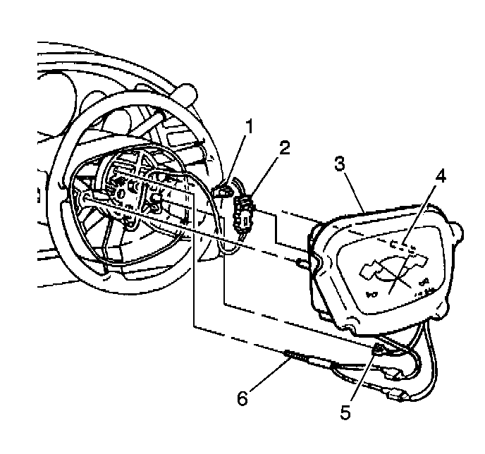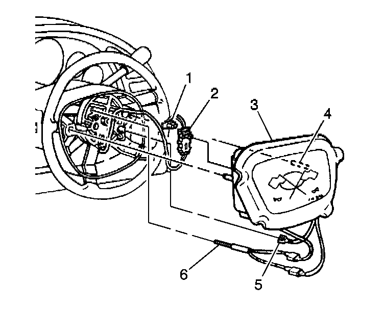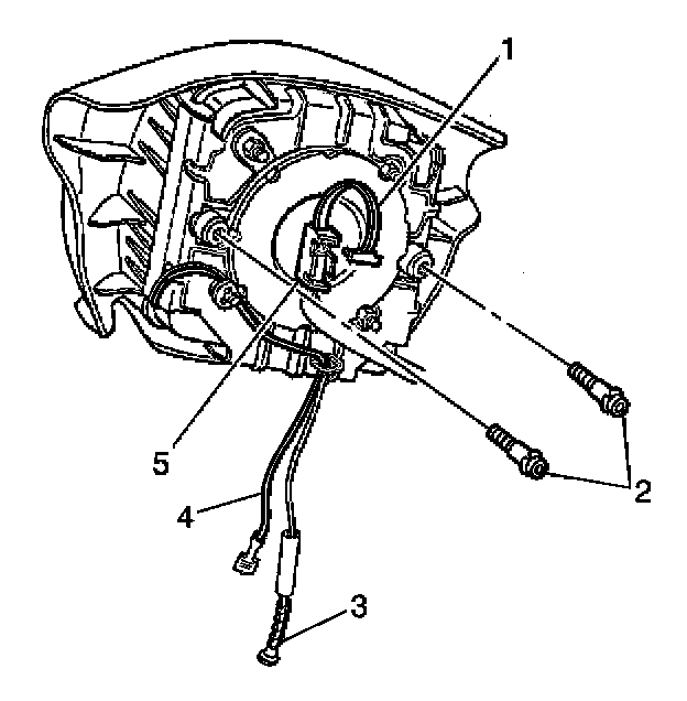 2. Remove the screws (4) retaining the inflatable restraint module (3) to the steering wheel.
