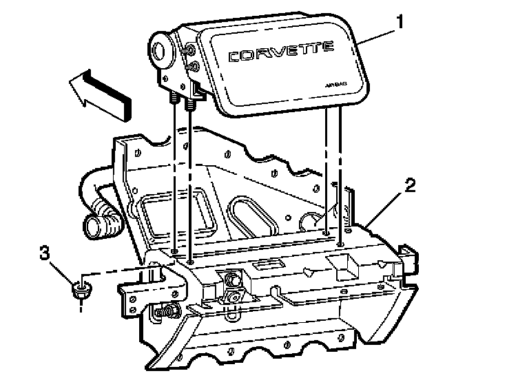 3. Install the SIR module (1) to the SIR bracket (2) as marked prior to removal.