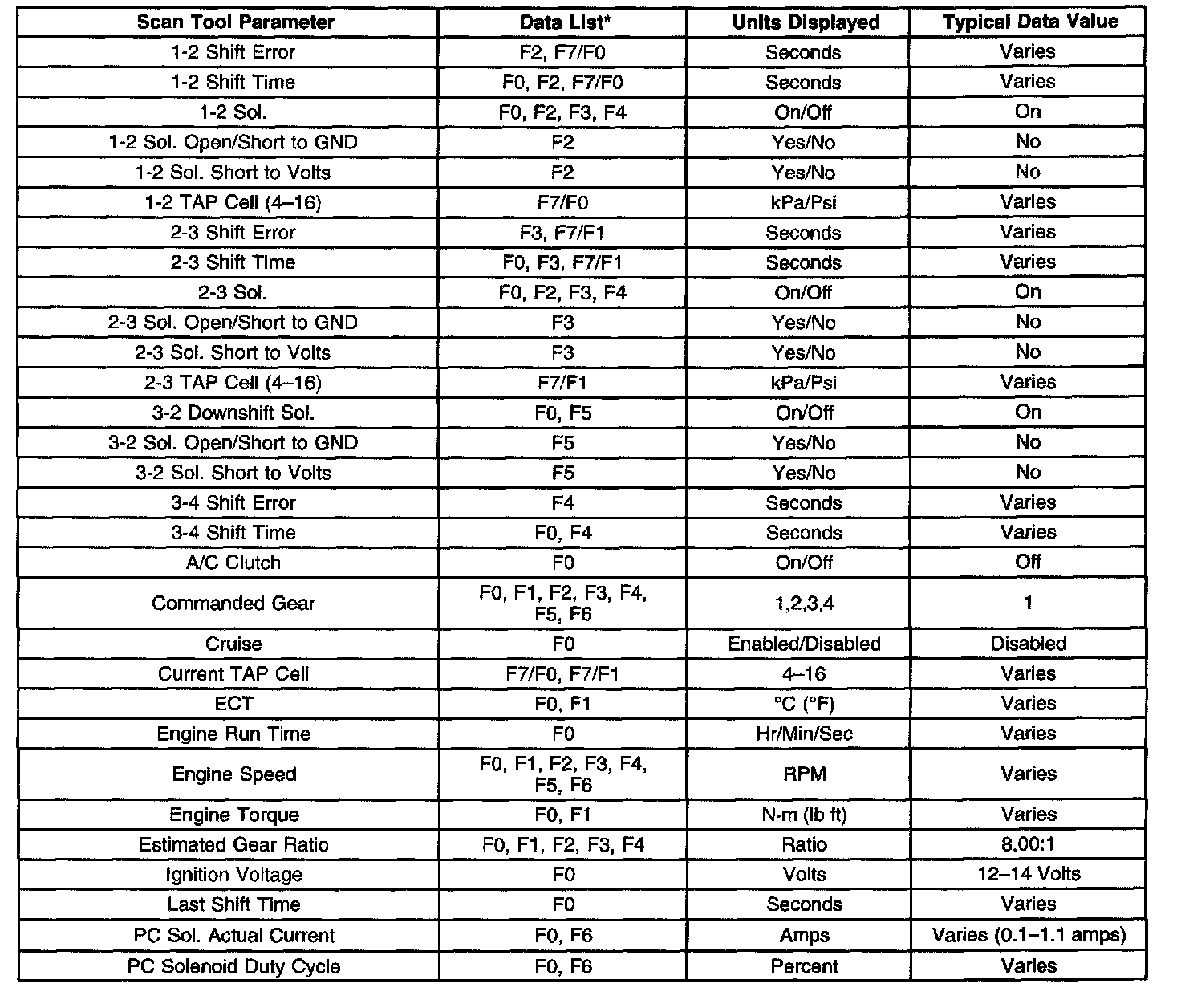Transmission Scan Tool Data List Part 2 Of 2: