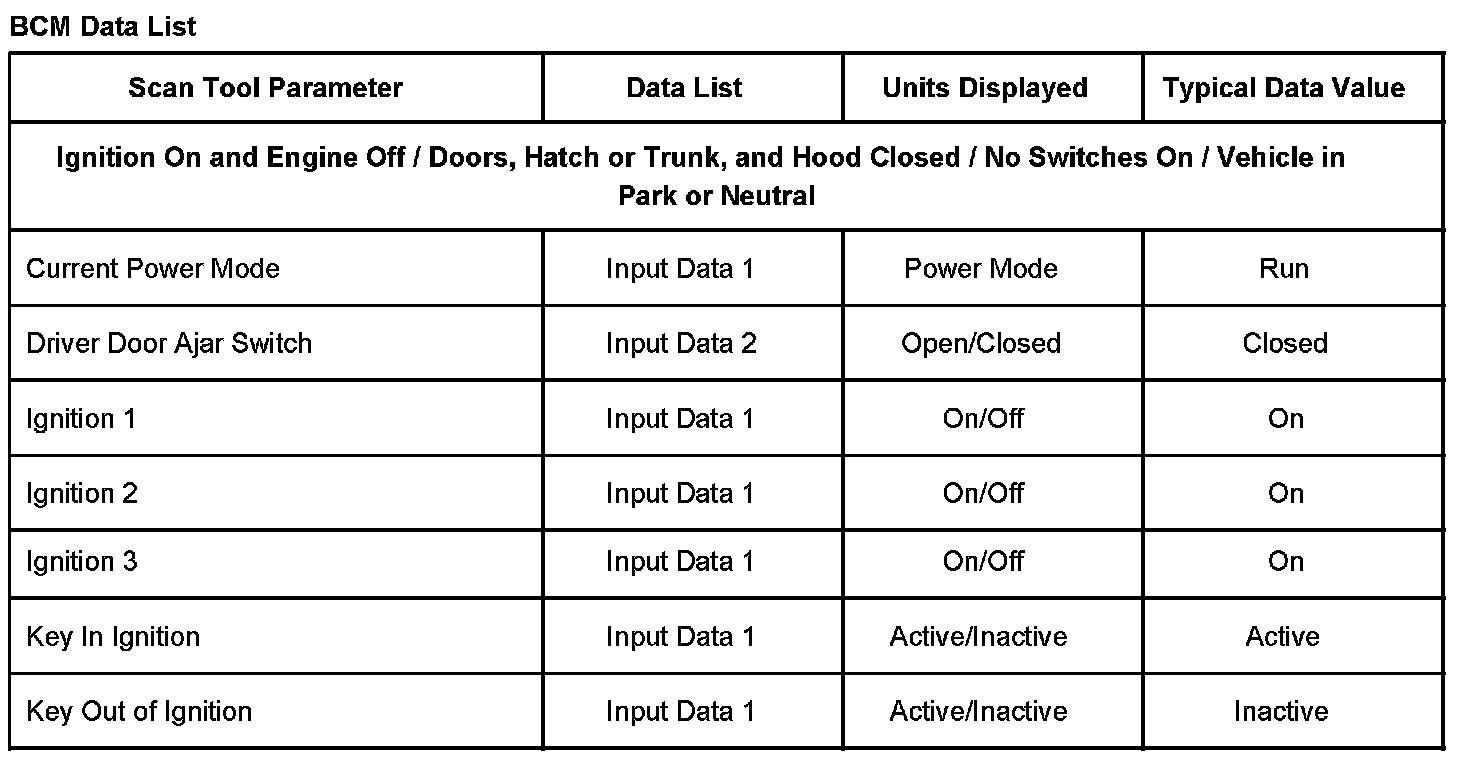 BCM Data List: