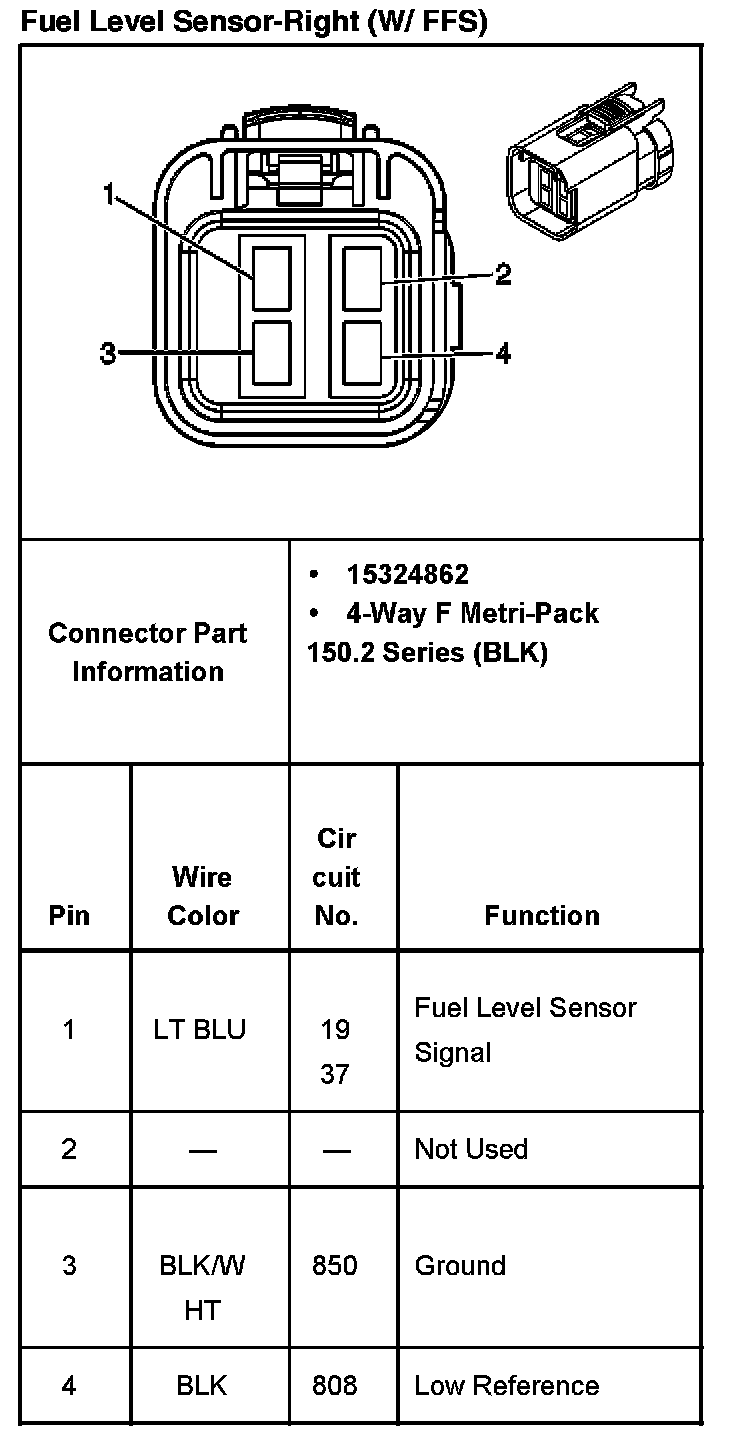 Fuel Level Sensor-Right (Without RPO Code FFS):