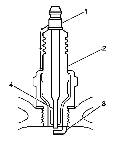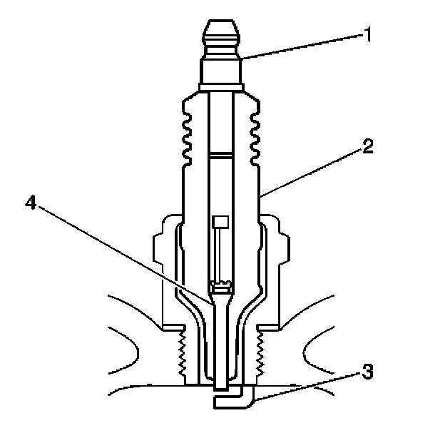 - Inspect for the correct spark plug torque. Refer to Ignition System Specifications. Insufficient torque can prevent correct spark plug operation. An over-torqued spark plug, causes the insulator (2) to crack.