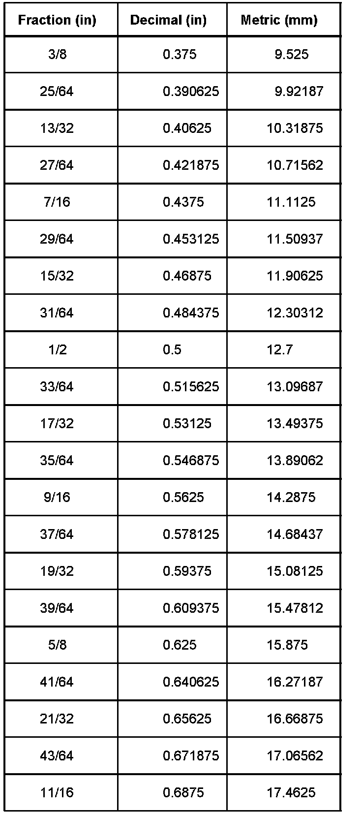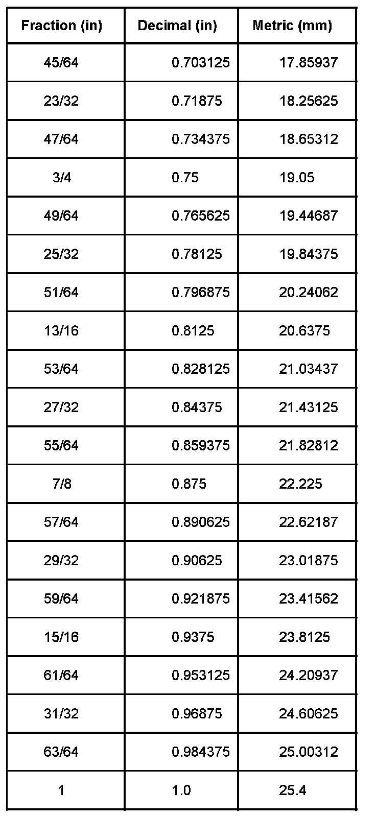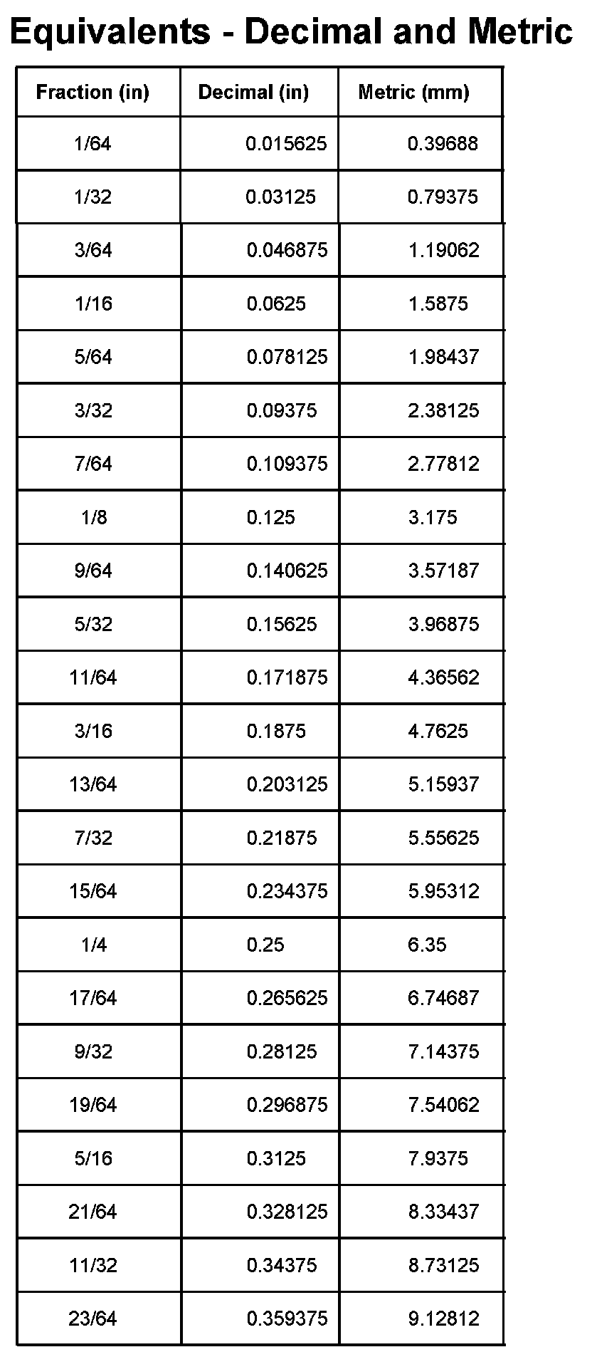 Equivalents - Decimal And Metric