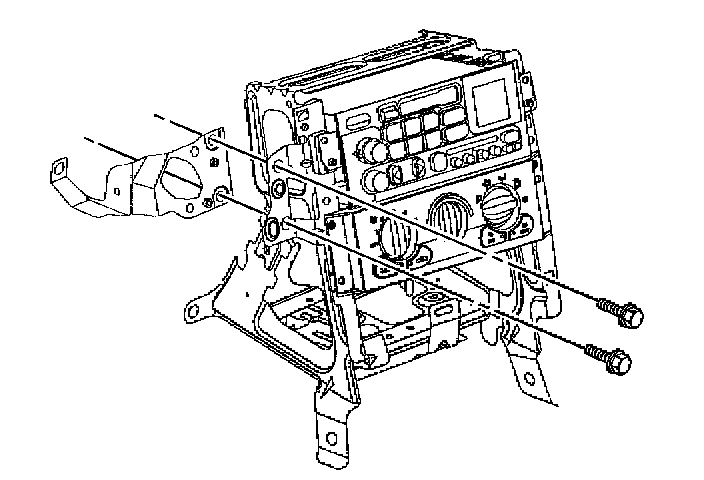 11. Remove the bolts retaining the ignition switch housing bracket to the IP center support bracket.