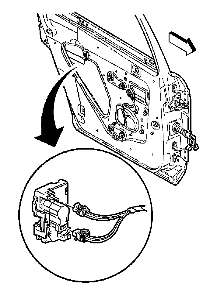7. Remove the rear door lock from the rear door with the rear door inside handle rods attached to the lock.