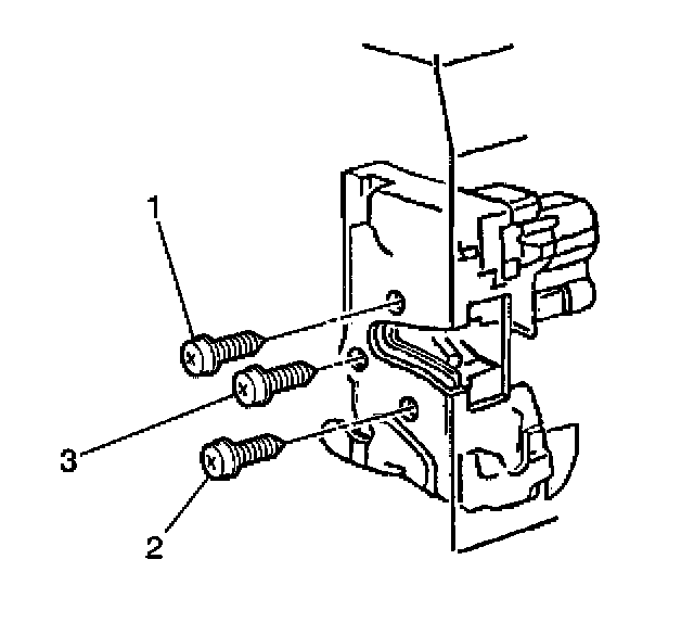 4. Install the rear door lock screws in the proper fastener tightening sequence as shown in graphic: top (1), bottom (2), middle (3).