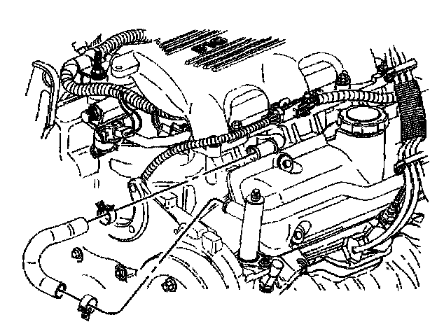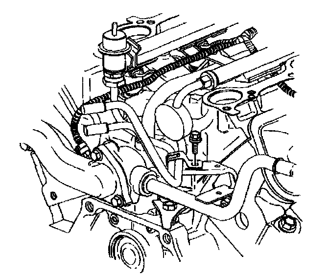 11. Remove the heater inlet pipe with the heater hose from the lower intake manifold and reposition the pipe.