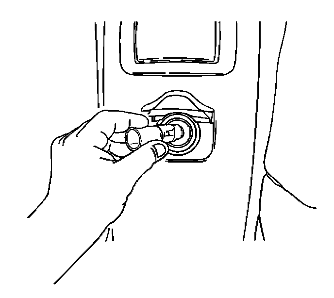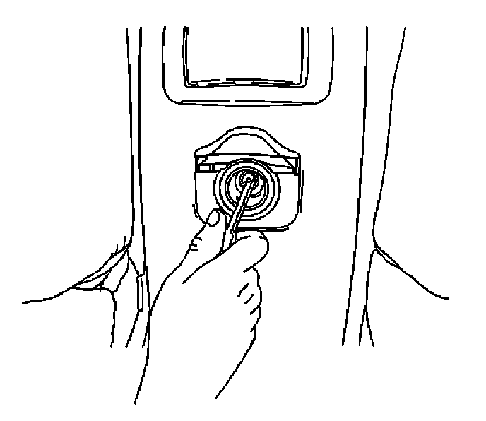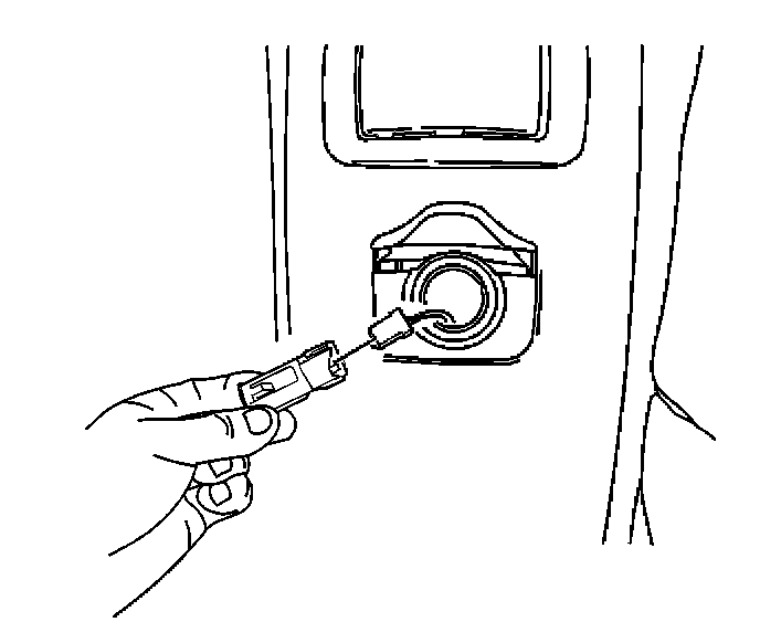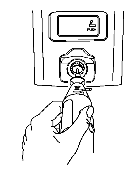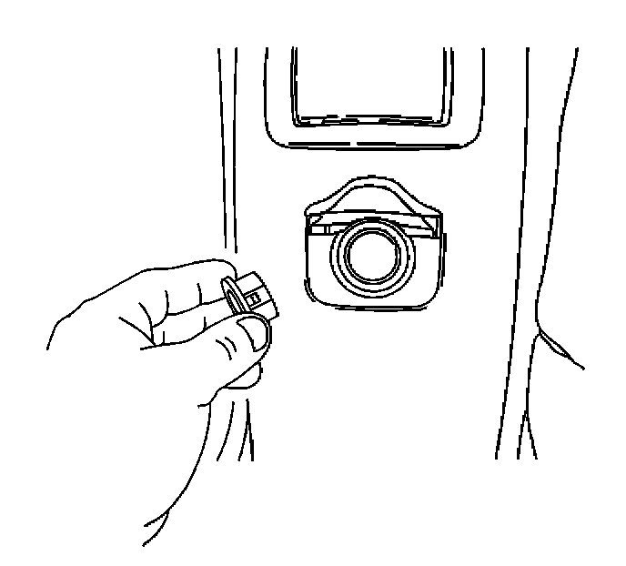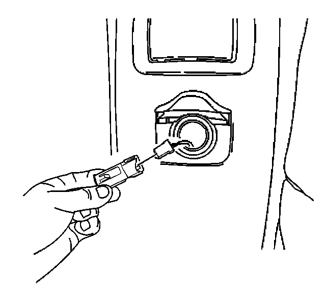 2. Remove the power accessory port socket by placing one side of the "T" portion of J 42059 into the tab window. Angle the other side into the opposite tab window. Pull the power accessory port socket straight out.