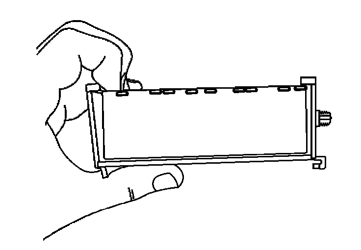 2.1. Spread the large tang side of the plastic bracket over the edge of the module. The bottom, undercut edge of the plastic bracket will snap over the bottom of the module when fully seated.