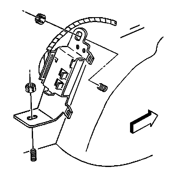10.3. Slide the plastic bracket assembly inboard, under the metal bracket. Remove the plastic bracket assembly from the metal bracket.