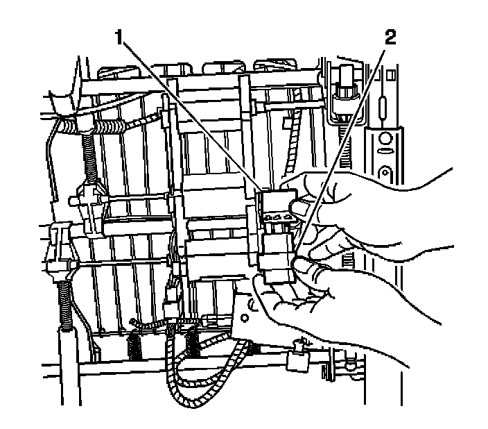 2. Connect the electrical harness connector (1) to the heater module (2).